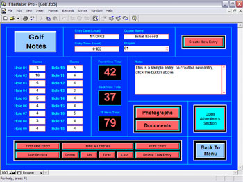 Each Main Section’s Data Entry Area will have a little different look to it, depending upon what information is typically entered into the particular section. In all of the Main Sections, the searching, finding, retrieving, compiling, sorting, displaying, and printing, functions all operate the same. This makes LeisureNotes™ a very easy program to learn and use. Once you've learned one section, you've really learned the entire program In addition to the text based information that can be entered into each of the Main Sections, graphic based items can also be inserted. Such items may include maps, licenses, diagrams, documents, photographs, etc. Finally, with LeisureNotes™, you will have everything you need, literally right at your fingertips! |