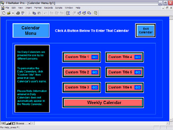 A Calendar Section is also provided in the LeisureNotes™ Software. The Calendar is very versatile in that it provides the users several options. There are six customizable individual calendars. This allows up to six family members to keep their own calendars, and each family member can view other members' calendars so everyone will always know where everyone needs to be at what time. There is also a Weekly Calendar area for the entire family to use. And, there is the Build Your Own Wall Calendar Section. This Section actually has two uses. First, as a monthly calendar for the family. Second, this Section enables you to create an annual hanging wall calendar, including your own personal photographs. The hanging wall calendars are useful at home, and, they make great gifts. Imagine the glow in Grandma's eyes when she receives a beautiful new calendar filled with photographs of her grandchildren!