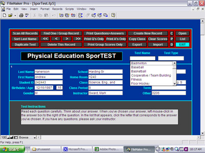 The SporTest Section enables teachers to design their own tests. Tests can be developed on any subject matter, at any time, and they can be stored for use in years to come. When the students take the tests, they can then be exported to a scoring component that will automatically score the test based on the answer key designed by the teacher. The students’ scores can then be entered in the PhysAssist Grading Section, which will automatically calculate the tests’ grades based on the grading parameters decided upon by the teacher. |