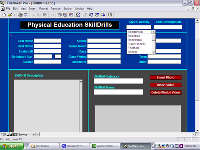 The SkillDrills area allows teachers to develop, store, and organize various educational materials relating to various skills taught for each physical education unit. For example, in a baseball or softball unit, students may be taught batting skills, fielding skills, and running skills. In this sub-section, these skills can be described in text form for the students to review, or, if the teacher has diagrams or digital photo or video files presenting a given drill, they may be inserted into the program as well. |