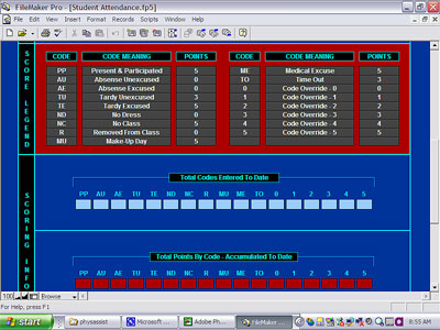 and their corresponding point values. Shown on the lower part of this screen are automatic calculation fields that will display the number of each code entered per student, as well as the total points accumulated per code. Cumulative totals are also automatically calculated. |