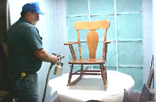 This "HVLP Spraying System" is designed to apply all stains & finishes to any furniture piece to create a beautiful flawless finish. Being in the booth makes sure that no dust particles can get under the sprays, causing spots & bumps. Furniture Service Station only uses Waterborne stains and finishes to ensure the finest quality that each individual piece should have. This guarantees there are no fumes or odors coming from the furniture like an oil base stain & finish will leave. |