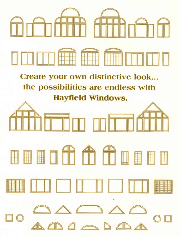 Hayfield offers custom windows in all shapes and sizes, and has many interior and exterior options so you can create that special look that fits your home and your personality. |