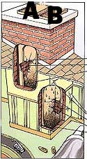In flue marked "A", servicing a fireplace or woodstove, you can see: