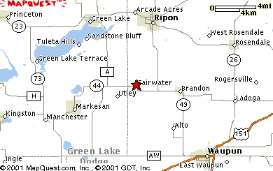 | Located auspiciously on the route of Wisconsin's Military Road and on an early north-south route from Watertown, the village of Fairwater took shape around the water power of the Grand River and in 1847 became the first community established in the town of Metomen and among the earliest in Fond du Lac County. | ![]() |