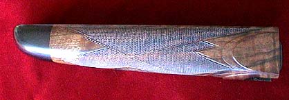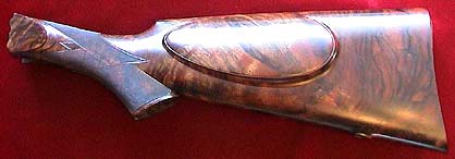 Stock work for a Hagn single shot sporter in 6.5 x 57 R caliber. The action has an extended top tang over the comb nose, a new trigger, trigger bow, lever and is barreled in half octagon half round with a claw-mounted scope. Robert Swartley is presently doing the engraving. |